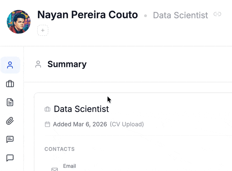 Keep your talent pool structured the way that makes sense to you. Add custom tags to candidate profiles so you can group, filter, and find the right people in seconds — whether by role, seniority, tech stack, or anything else.